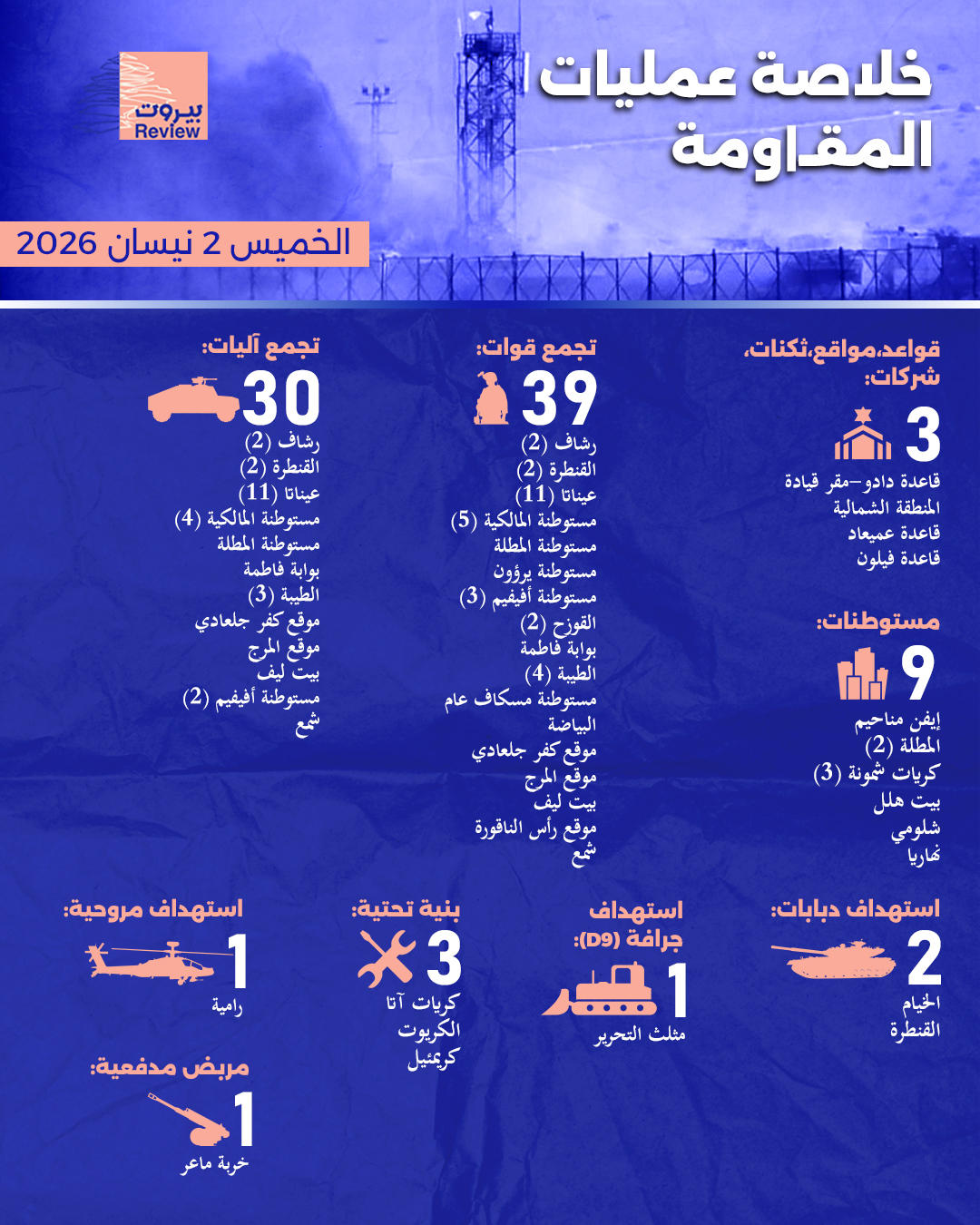 خلاصة عمليات المقاومة "الخميس 2 نيسان 2026"