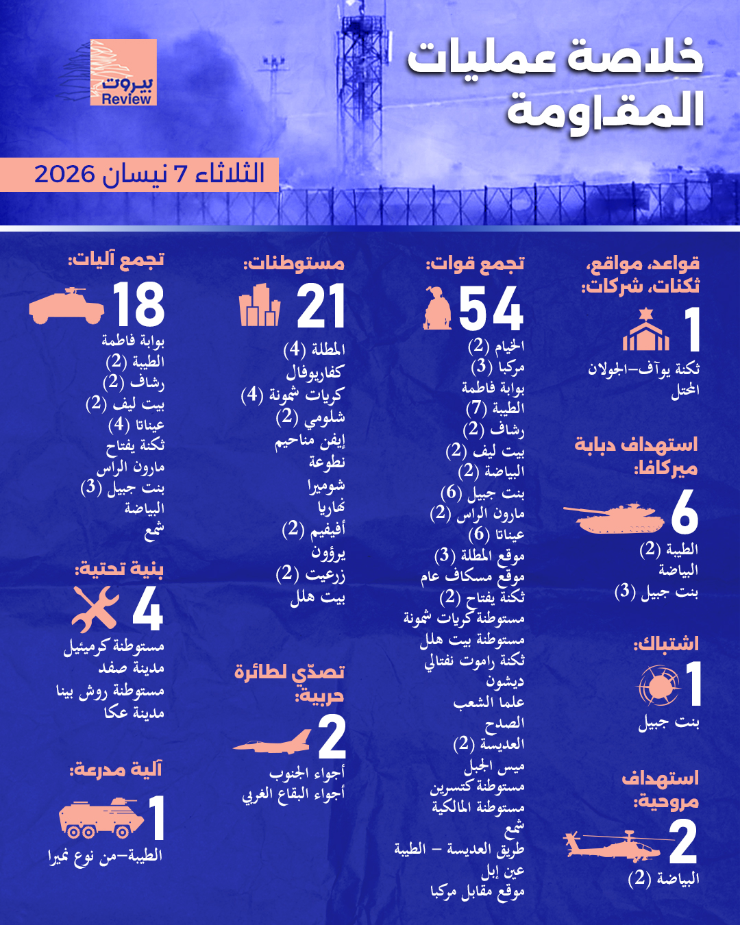 خلاصة عمليات المقاومة "الثلاثاء 7 نيسان 2026"
