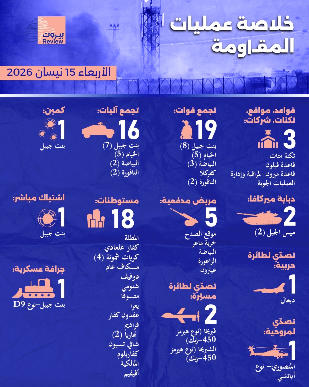خلاصة عمليات المقاومة "الأربعاء 15 نيسان 2026"