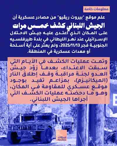 معلومات خاصة 2025-11-14 الجيش يدحض أكاذيب العدو الإسرائيلي العدو الإسرائيلي يقصف في طيرفلسيه ويبث الأكاذيب التي يدحضها الجيش اللبناني الذي تفقد المنطقة ٥ مرات ونفى وجود بنى عسكرية فيها.IMG_7396.jpeg 84.94 KB