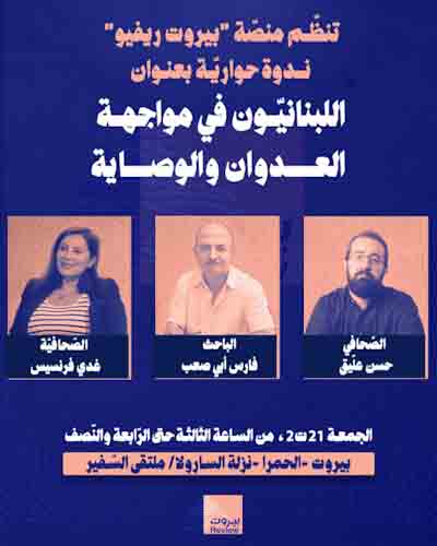 تدعوكم منصة "بيروت ريفيو" لحضور ندوتها الحوارية الأولى بعنوان: "اللبنانيّون في مواجهة العدوان والوصاية".