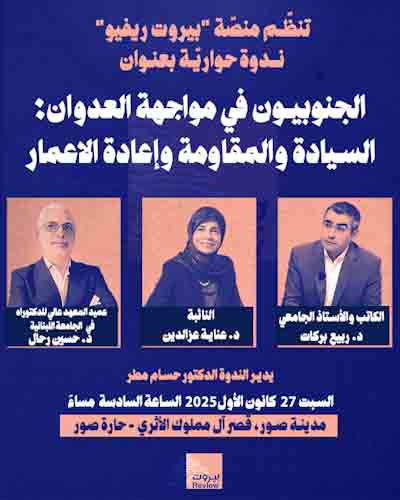منصّة "بيروت ريفيو" تنظم ندوة حواريّة تحت عنوان: "الجنوبيون في مواجهة العدوان: السيادة والمقاومة وإعادة الاعمار".