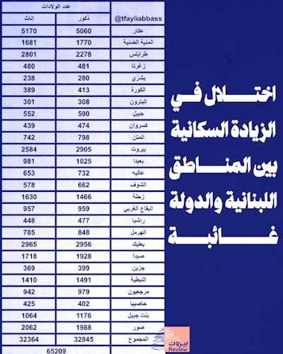 وفي هذا الصدد أعدّ الناشط الاجتماعي عباس طفيلي دراسة لنسب النمو السكاني، قائمة على أرقام رسمية من سجلات الأحوال الشخصية من حيث عدد الولادات والوفيات السنوية.