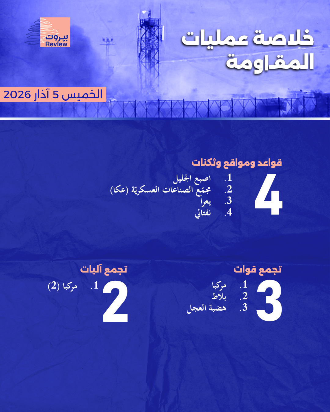 خلاصة عمليات المقاومة "الخميس 5 آذار2026"