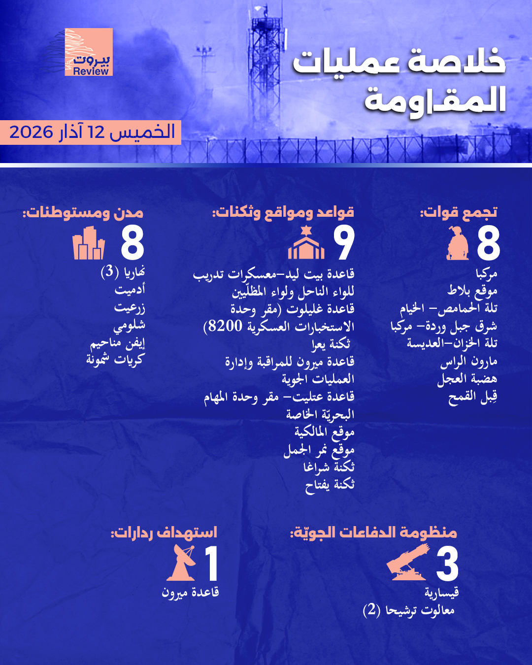 خلاصة عمليات المقاومة "الخميس 12 آذار 2026"