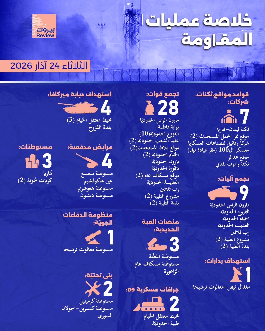 خلاصة عمليات المقاومة "الثلاثاء 24 آذار 2026"