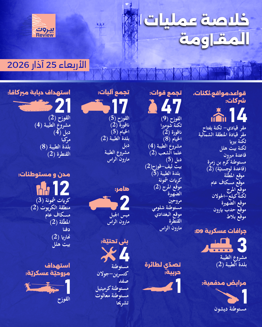 خلاصة عمليات المقاومة "الأربعاء 25 آذار 2026"